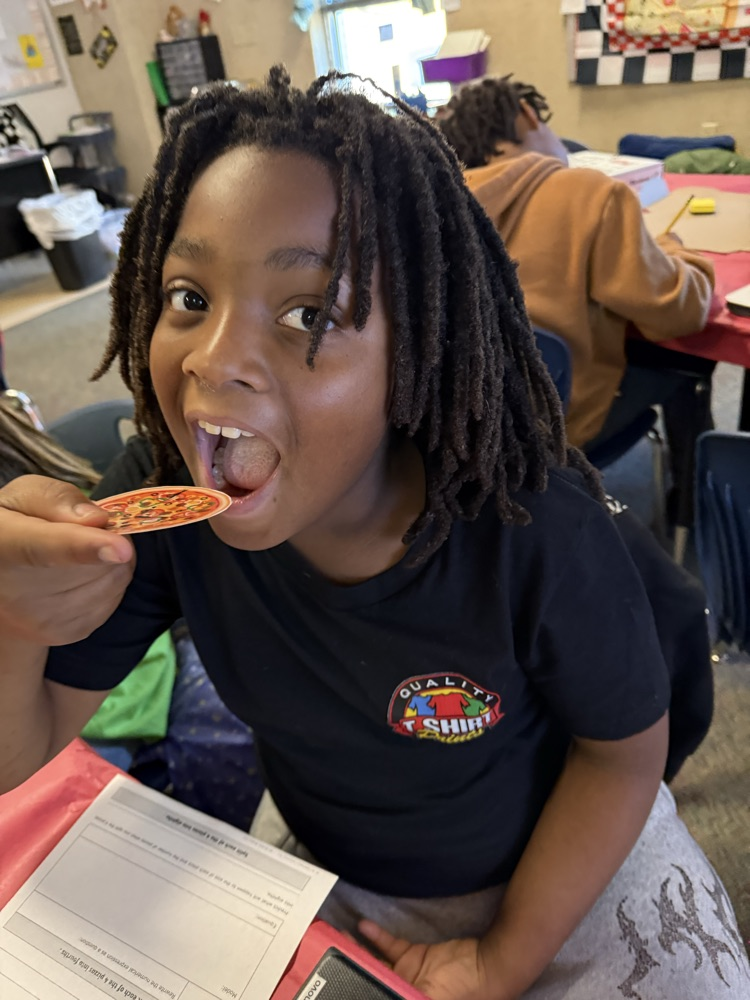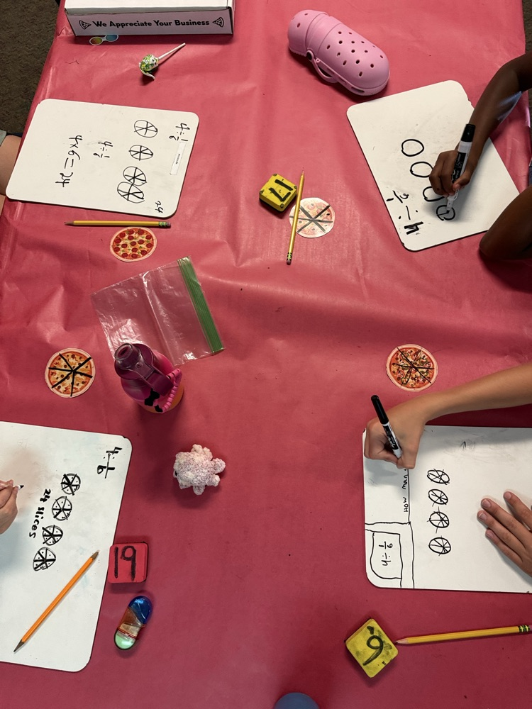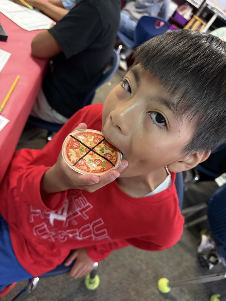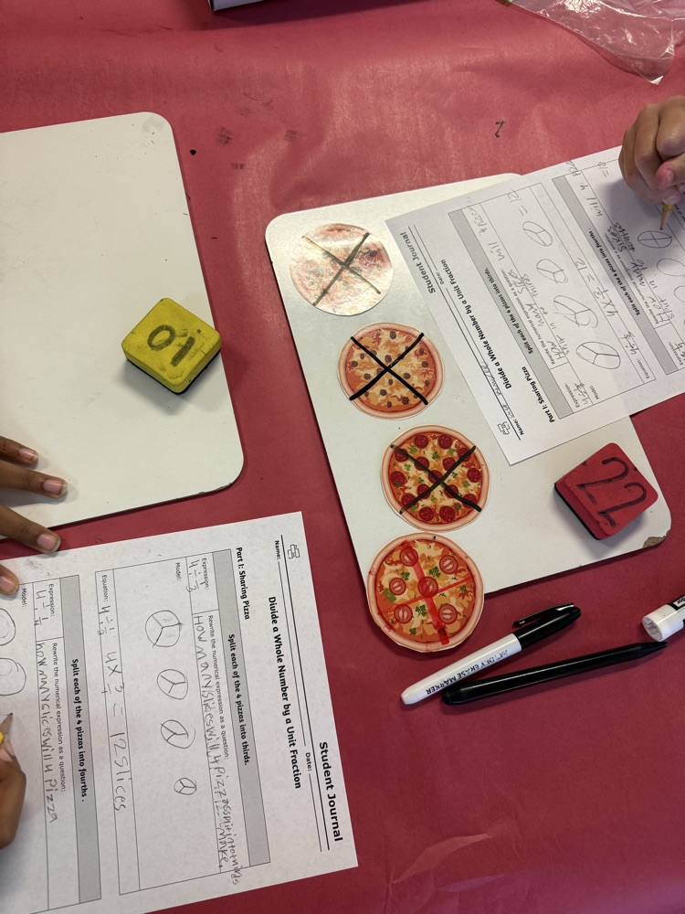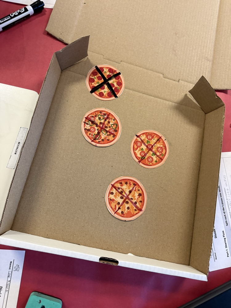 Today 5th grade kicked off Dividing Fractions by visiting the Riddle Pizzeria! They had a hands on experience dividing fractions and whole numbers!