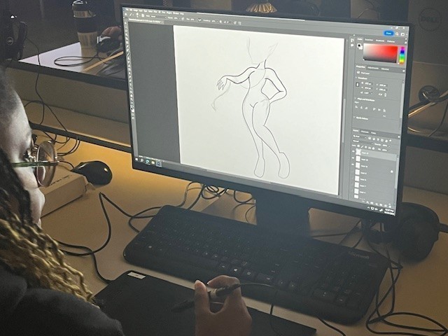 Our CTC Practicum of Graphic Design students began their custom character design project, completely organized by the seniors themselves. From content, to stipulations, to rubric and deadline, the seniors worked as a group to discuss and detail all parameters for the project. Here we have several student fleshing out and creating costumes for their characters. The final project consists of a mood board, giving the aesthetic prior to actually designing, shape language, which gives a character a softness, angularity or boxiness, then the actual character and scenery. Their finals will be printed and displayed at CTC. Many of these students are certified Adobe Professionals in either Adobe Illustrator and/ or Photoshop. Later this year, they will have the opportunity to acquire and Adobe InDesign certification. Plus, 6-7 of these students will begin Graphic Design internships with companies in Tyler. For more information on this program, please visit: Graphic Design and 3D Modeling Pathway information