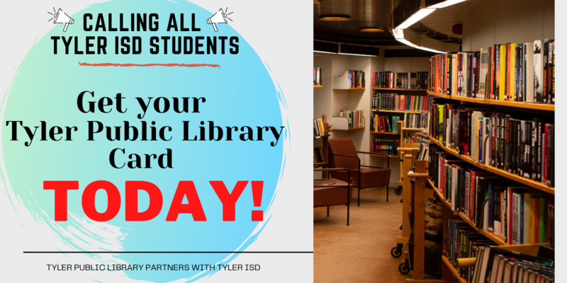 The Tyler public library is also hosting free and fun events all summer long and Tyler ISD students may obtain a Tyler Public Library account without needing to purchase a membership due to non-residence status. In order to obtain a Library card, please visit the Library at 201 S. College Avenue in downtown Tyler during current operating hours. You must bring proof of enrollment or your student identification.