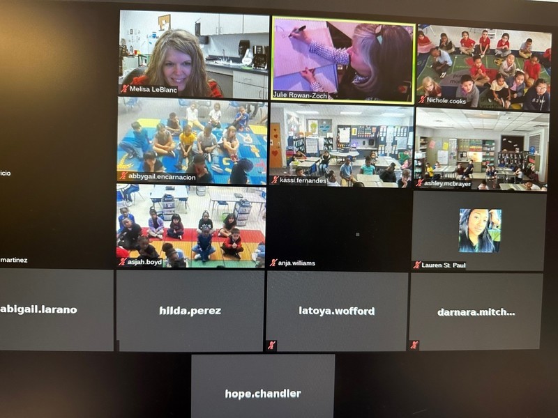 She also took the time to show the students some simple illustrating tips and tricks, such as how to take the same oval face shape and change minor details to make it look like an older adult, a child or a baby. Students enjoyed ending the chat by submitting questions to our special guests such as "what was the first book you wrote?" and "when did you read your first book." Students requested for the Colorado based illustrator to come visit them in Texas sometime.