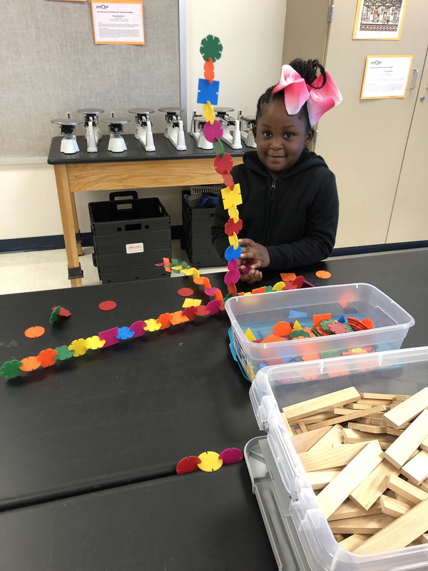 Inside classrooms and outside hallways turned into interactive learning spaces. From the Earth, sun, moon, and planets to marble runs and building blocks, museum exhibits include forces and motion, electricity and magnetism, light and color, the chemistry of smell, and geometry. The activities offered unique content engagement, higher-level thinking, and, most importantly, fun!